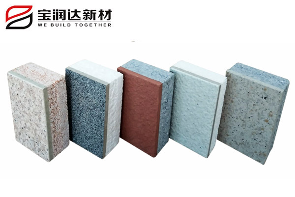 寶潤達(dá)一體板飾面層采用真石漆,多彩漆,水包水,水包砂,乳膠漆,實(shí)色/金屬氟碳超3000種顏色定制,可根據(jù)石材定做樣品