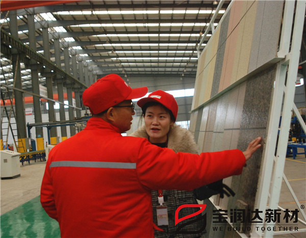 參觀生產(chǎn)線過程中,寶潤達(dá)系統(tǒng)綠色節(jié)能建材產(chǎn)品贏得客戶大力認(rèn)可,寶潤達(dá)自動化生產(chǎn)制造、現(xiàn)場管理等各方面也給客戶留下了深刻印象。